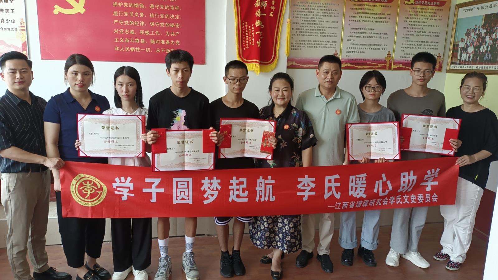 2023年8月19日上午,南昌市青山湖区老子文化交流促进会执行会长李俊、副会长兼秘书长李玲等一行5人来到赣州,对今年高考中表现优异的李氏学子进行了“学子圆梦启航,李氏暖心助学”的送爱心活动,为来自赣州的李芳芳、宁都的李泽楷、崇义的李强、会昌的李林及兴国的李琛等五位学子分别送上2000元的助学金。与此同时,南昌市青山湖区老子文化交流促进会顾问、赣州市章贡区公益事业联合会会长李仰东以个人名义又为现场的五位学子各捐赠2000元。